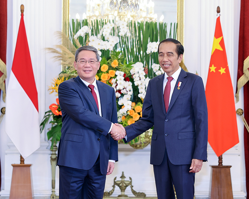李强首先转达习近平主席对佐科总统的亲切问候。李强表示,在两国元首战略引领下,中印尼关系保持强劲发展势头。一个多月前,习近平主席同你在成都会晤,就建设中印尼命运共同体“实景图”达成新的重要共识。中方愿同印尼一道落实两国元首重要共识,进一步加强发展战略对接,促进两国共同发展,为地区稳定繁荣注入持久动力。